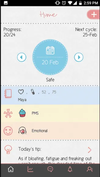 Maya REGION:Asia-Pacific Maya is a tool designed to help women around the world track their menstrual cycle, monitor related symptoms, set health reminders, track a pregnancy and even connect with medical advisers. The app is available in 14 languages and has users from 190 different countries.