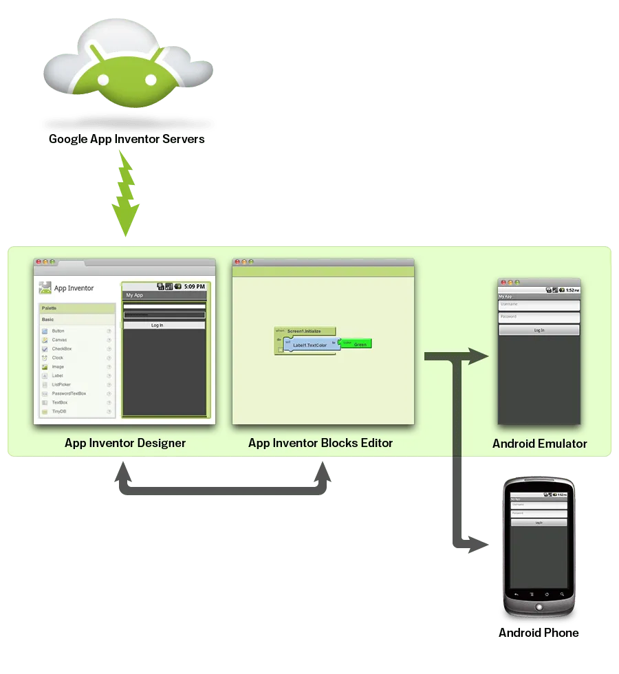 For those of you who have worked with a GUI builder and an event handler based code execution environment, the App Inventor 2 offers the same features for Android app development.